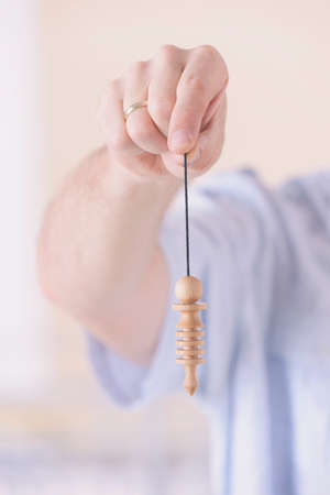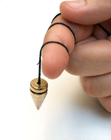 Hand with pendulum, tool for dowsing