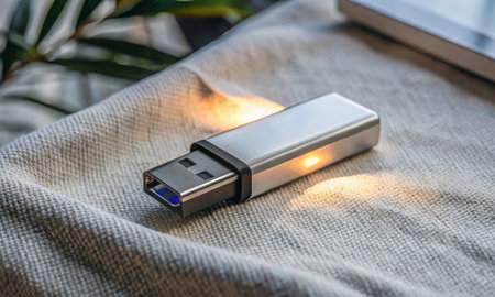 A sleek silver USB drive rests on a dark surface, highlighting its modern design and functionality for digital storage and data transfer needs.