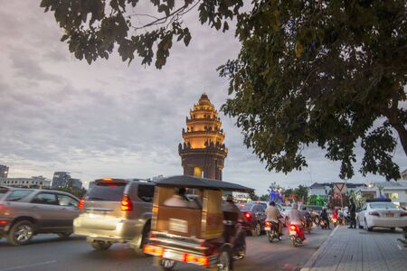 Phnom Penh, Cambodia - January 9, 2020: View of the Independence Monument on the Preah Suramarit boulevard.