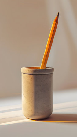 Pencil in ceramic holder symbolizes clean, minimalist design