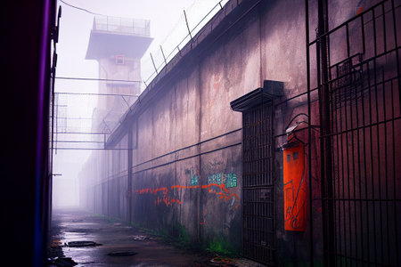 AI generated illustration of a prison in a dark alley