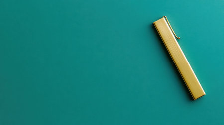 A striking gold metallic pen rests beautifully on a vibrant teal background, ideal for portraying modern creativity and stylish office aesthetics.