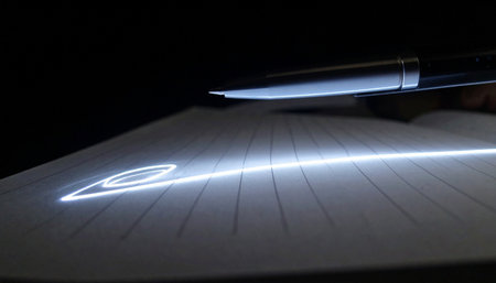 In a quiet, focused moment, a brilliant idea comes to life as a glowing pencil tip traces its path across the page.