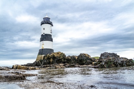 The Penmon point lighthouse is located close to Puffin Island on Anglesey, Wales - United Kingdom