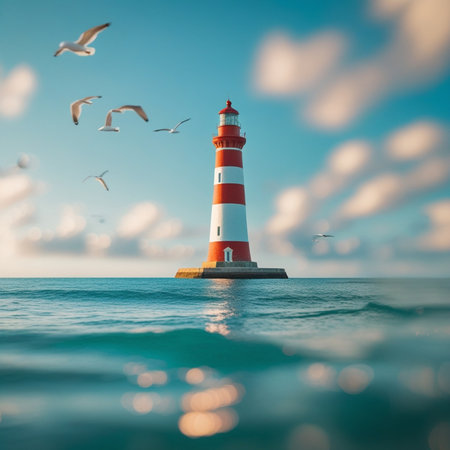 Serene Coastal Lighthouse Scenic Seascape Stunning View Calm Ocean Waves Peaceful Landscape