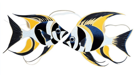 Captivating image of colorful marine fish showcasing blue, yellow, and black stripes, swimming gracefully in clear water. A striking example of underwater wildlife.