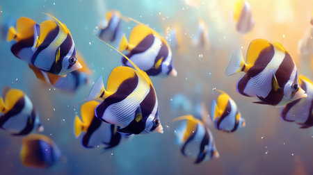 Colorful butterflyfish glide through a marine world, portraying underwater beauty and serenity