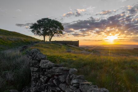 Sunset over the countryside in the Yorkshire Dales National Park, England