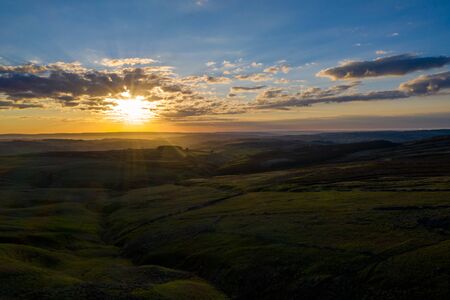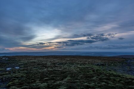 Sunset on the Derbyshire Peak District National Park in England