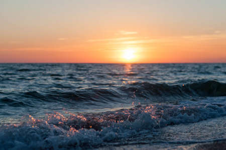 Sea waves on the background of beautiful sunset. Toned.