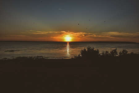 orange sunset over the Volga river