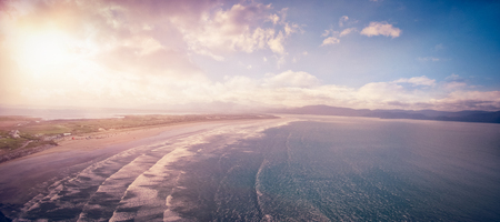 Aerial of Atlantic Ocean coastline early morning light