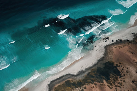 An AI generated illustration of the shoreline of the blue ocean - aerial