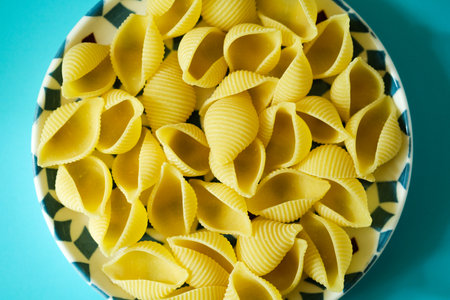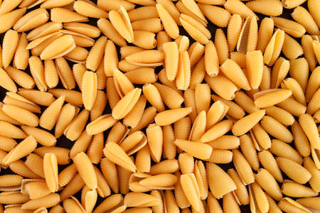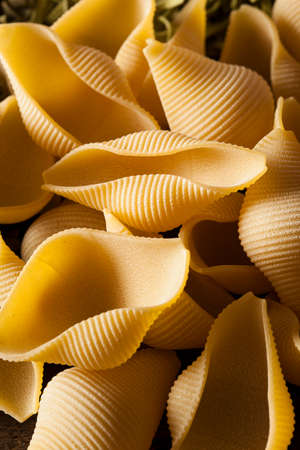 Closeup of uncooked italian pasta - conchiglie. Top views