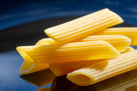 Italian uncooked dry pasta Penne rigate