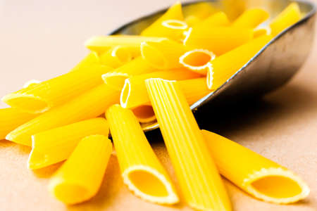 Raw Italian pasta. Raw Penne.