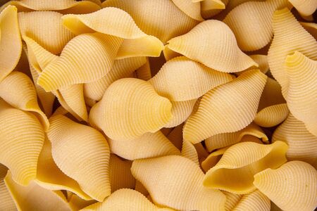 Shell-shaped pasta on the table. Background. Italian food. Cuisine of the peoples of the world. Cooking food. durum wheat