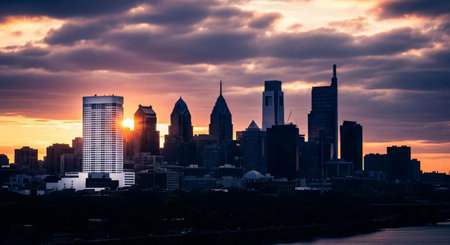 Downtown city skyline view of Philadelphia Pennsylvania USA over the Schuylkill River and boardwalk