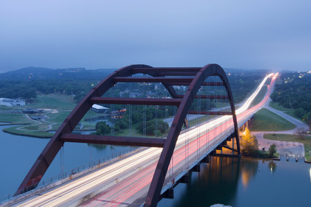 A scenic view of the Pennybacker Bridge in Austin, Texas
