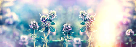 Selective and soft focus on thyme flower, beautiful thyme flowers lit by sunlight