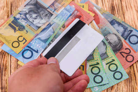 credit card with Australian dollars on the table