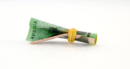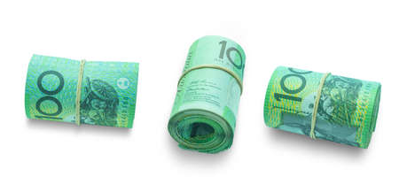 Rolled Australian banknotes isolated on white background with clipping path.
