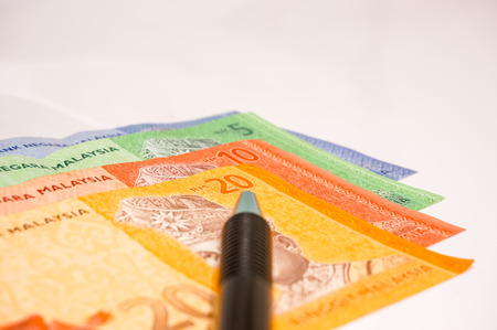 pen with bank notes isolated on white