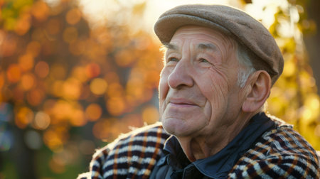 Portrait of an old man with a cap in the park.