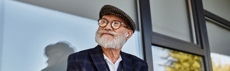 Portrait of handsome mature man, outdoors; panoramic banner