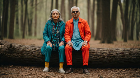 Wise Aged woman and man couple. Fun relax. Generate Ai