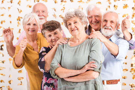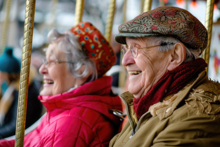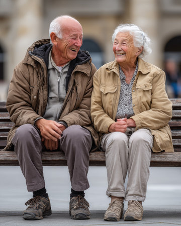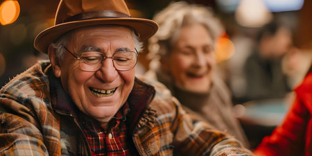 a happy team of people in their 70s, depicted in a random scene filled with laughter and warmth, celebrating the bonds of friendship and shared experiences