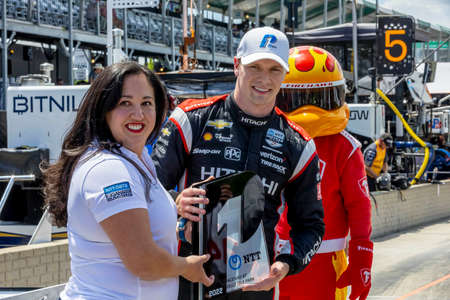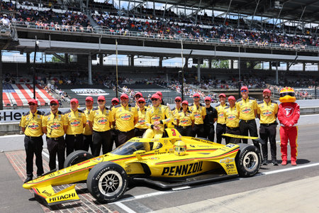 NTT INDYCAR SERIES driver, SCOTT MCLAUGHLIN (3) (NZL) of Christchurch, New Zealand, poses for the traditional photo after qualifying for the 109th Running of the Indianapolis 500 at Indianapolis Motor Speedway in Speedway, IN, USA.