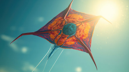 complex geometric shapes flying through the sky in a time-lapse video, created with generative ai