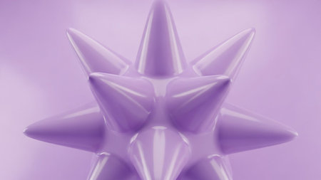 A detailed close-up of an abstract, spiky purple geometric with glossy, reflective surfaces, set against a soft, defocused bokeh background with...
