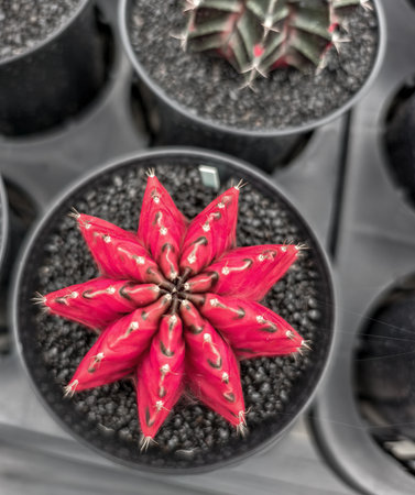 Beautiful cactus in garden. Widely cultivated as an ornamental plant. Selective focus close-up shot.