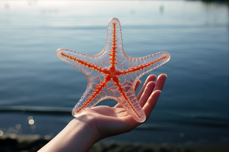 Captivating Composition: A Palm Over a Purple Starfish in a 3:2 AR
