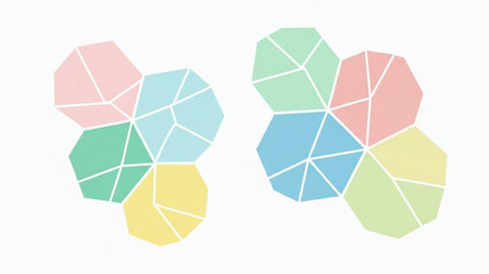 Geometric shapes of various colors forming a network diagram. --ar 3:2 Job ID: 305cebb8-b307-453a-ab97-539009d13575