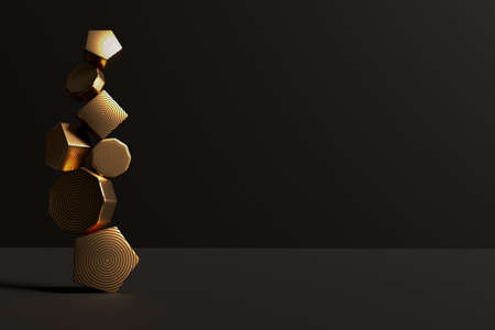Abstract 3D render design ready template with black and gold objects