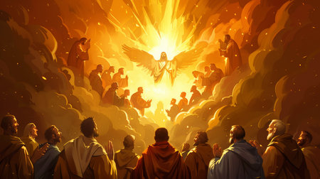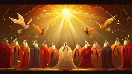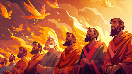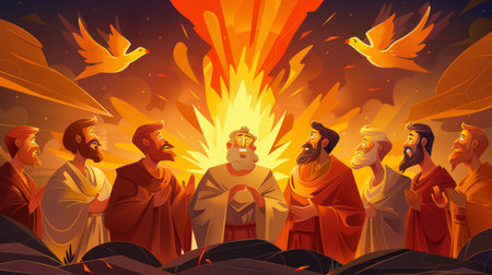 29051251 01 Cartoon vector illustration of the Pentecost, with the Holy Spirit descending as tongues of fire on the apostles --ar 16:9 --style raw --stylize 250 Job ID: 1b35b658-24f3-43c7-9c5d-2a457c7a4aa3