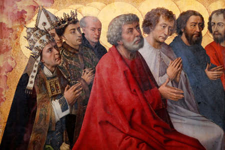 Hospices de Beaune museum. Rogier Van Der Weyden (1399-1468) polyptych altarpiece. Detail. The last Judgment. The apostles. France.