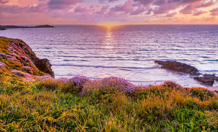 Beautiful Cornwall cliffs in summer at sunset
