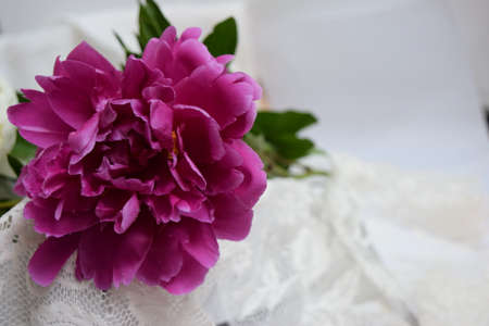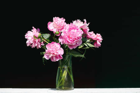 Still life with a beautiful bouquet of pink peony flowers. close-up. selective focus.