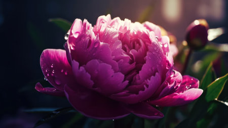 Pink peony flower with raindrops. Valentine's day or Mother's day background.
