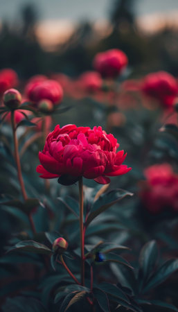 Beautiful nature scenic backdrop with romantic blossom flower. Peonies background