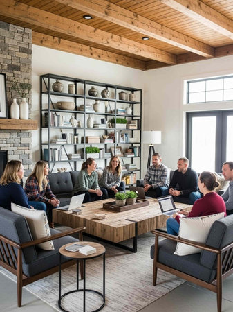 A Casual Group Gathering in a Modern Living Space That Exudes Comfort and Joyful Vibes