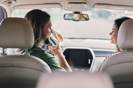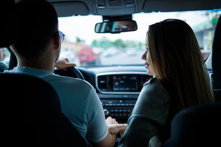 couple driving in a car, view of the car interior generative ai