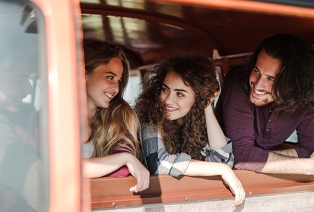Friends travelling by rented car during vacations