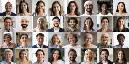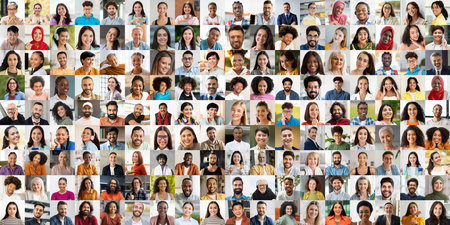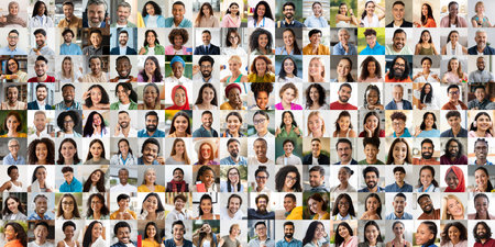 Diverse human faces collage varied ages, genders, and ethnicities for impactful representation