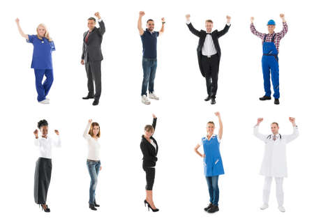 Collage set collection of people with various occupations professionals standing isolated on white background