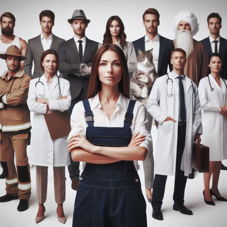 Group of diverse professionals from various industries and sectors standing together, symbolizing unity and collaboration
